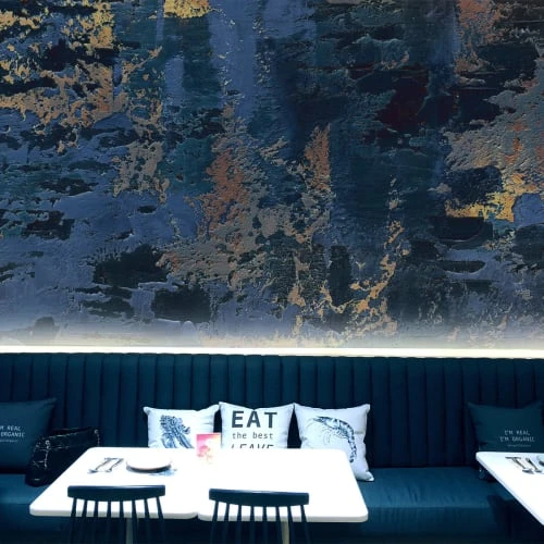 Intissé à base de fibres cellulosiques et polyester liées par un acrylique sans PVC 160g. Impression encres Latex sans solvant et sans COV. Classement au feu M1