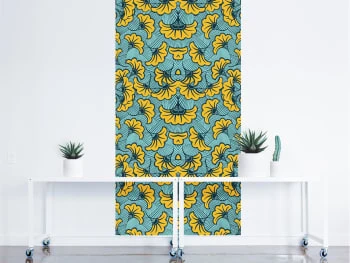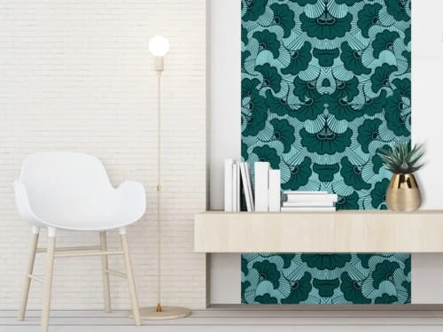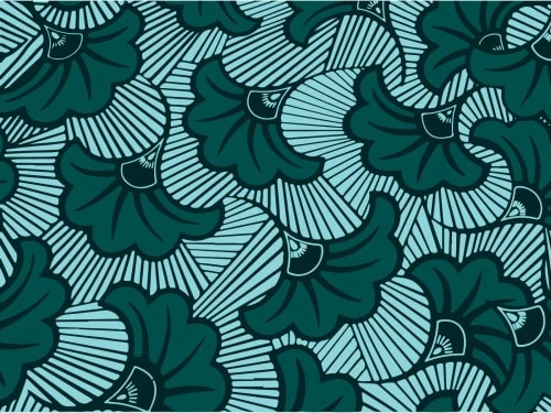 Motifs : wax, tissus africains, feuilles ginkgo biloba.