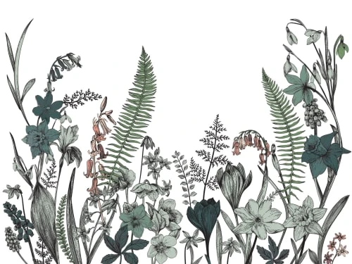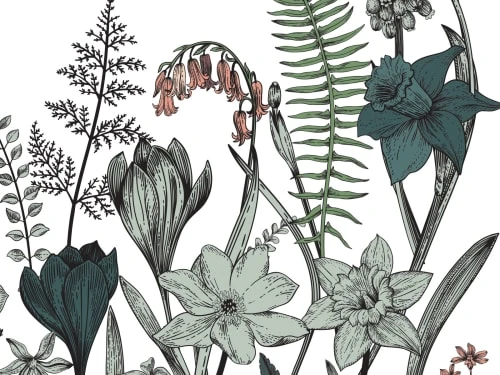En hommage au ballet d’Igor Stravinsky, ce modèle représente des feuilles, fleurs et tiges aux contours dessinés à la façon d’une gravure ancienne. Il marie avec subtilité des coloris de verts assourdis, de bleu paon, de rose blush et terracotta.