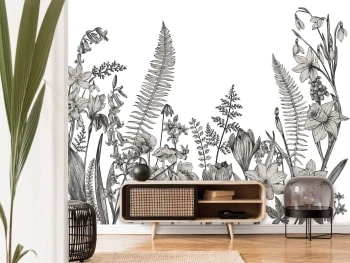Motifs : fleurs et feuilles.