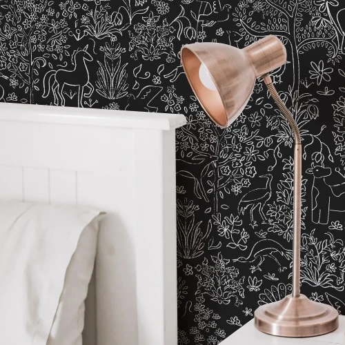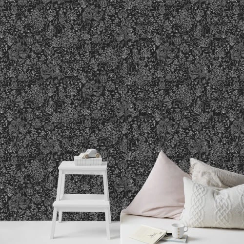 Caractéristiques du Papier Peint Forêt Magique Noir, blanc