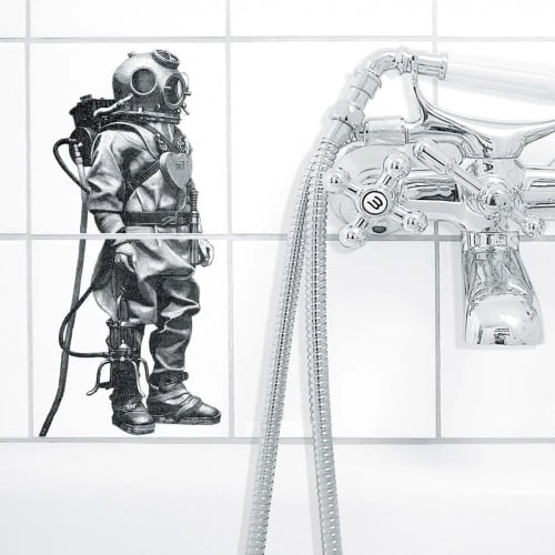 Set composé de 2 stickers muraux pour carrelage de cuisine ou salle de bain représentant un plongeur. Ces stickers muraux sont conçus pour être résistants à l’eau et aux UV et conviennent pour toutes les zones même humides. Facile à poser, en moins de 1 minute, et ne laissant aucune trace, ces stickers pour carrelage vous permettent de décorer à moindre frais ou de cacher une fissure ou un trou. Dimensions: 15*15cm – Couleur: Noir et Blanc – Matière: PVC